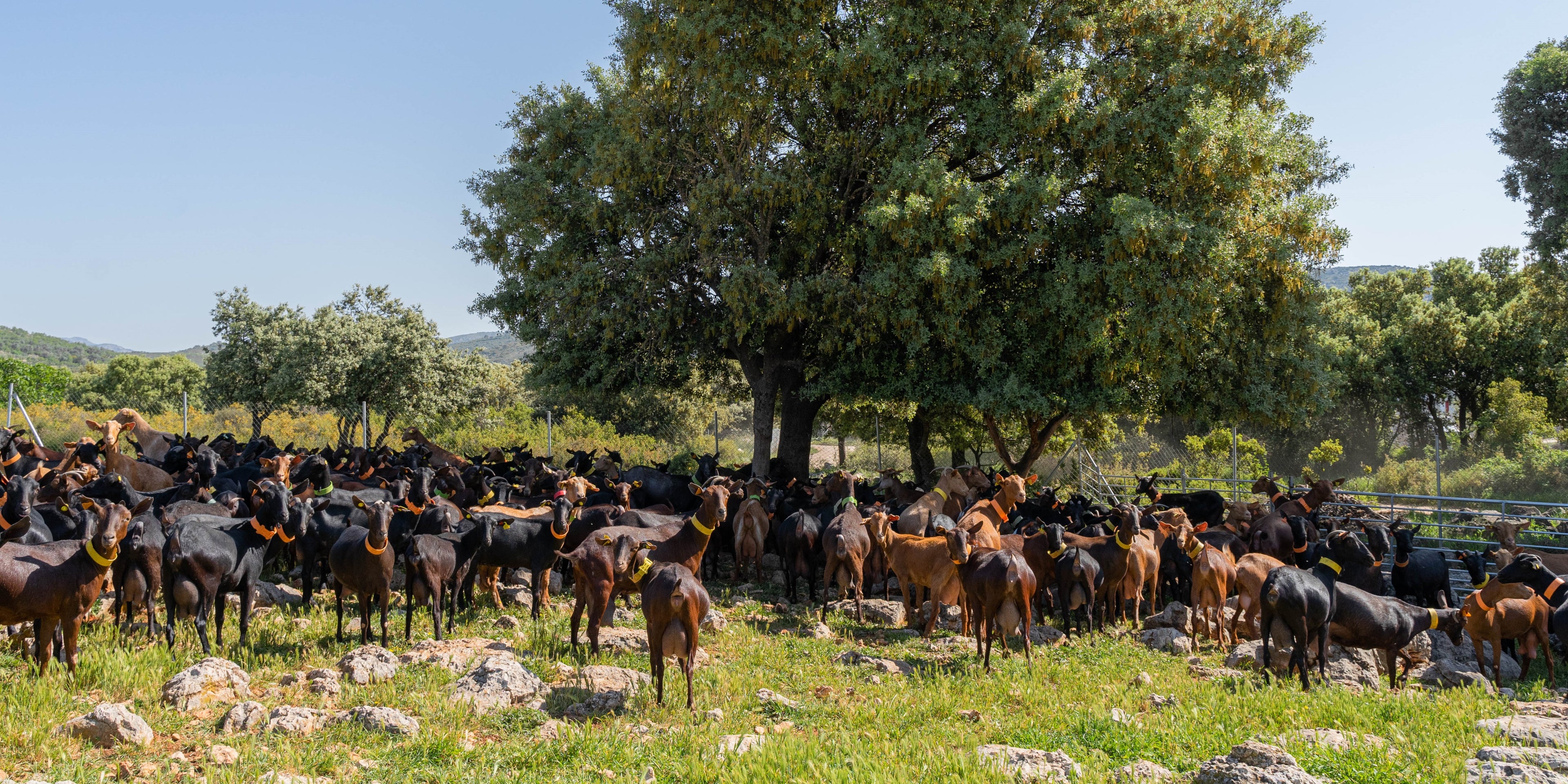 El clima, la altura y las características del terreno son el motivo de la abundancia de encinas, manzanilla, romero, coscoja, tomillo y otros arbustos que son el pasto idóneo para nuestro ganado caprino. Cabras que se desarrollan saludablemente en estas tierras de amplios campos, produciendo tiernas carnes y ricos quesos que transportan a nuestro paladar una verdadera experiencia gastronómica basada en los caracteres naturales de esta región.