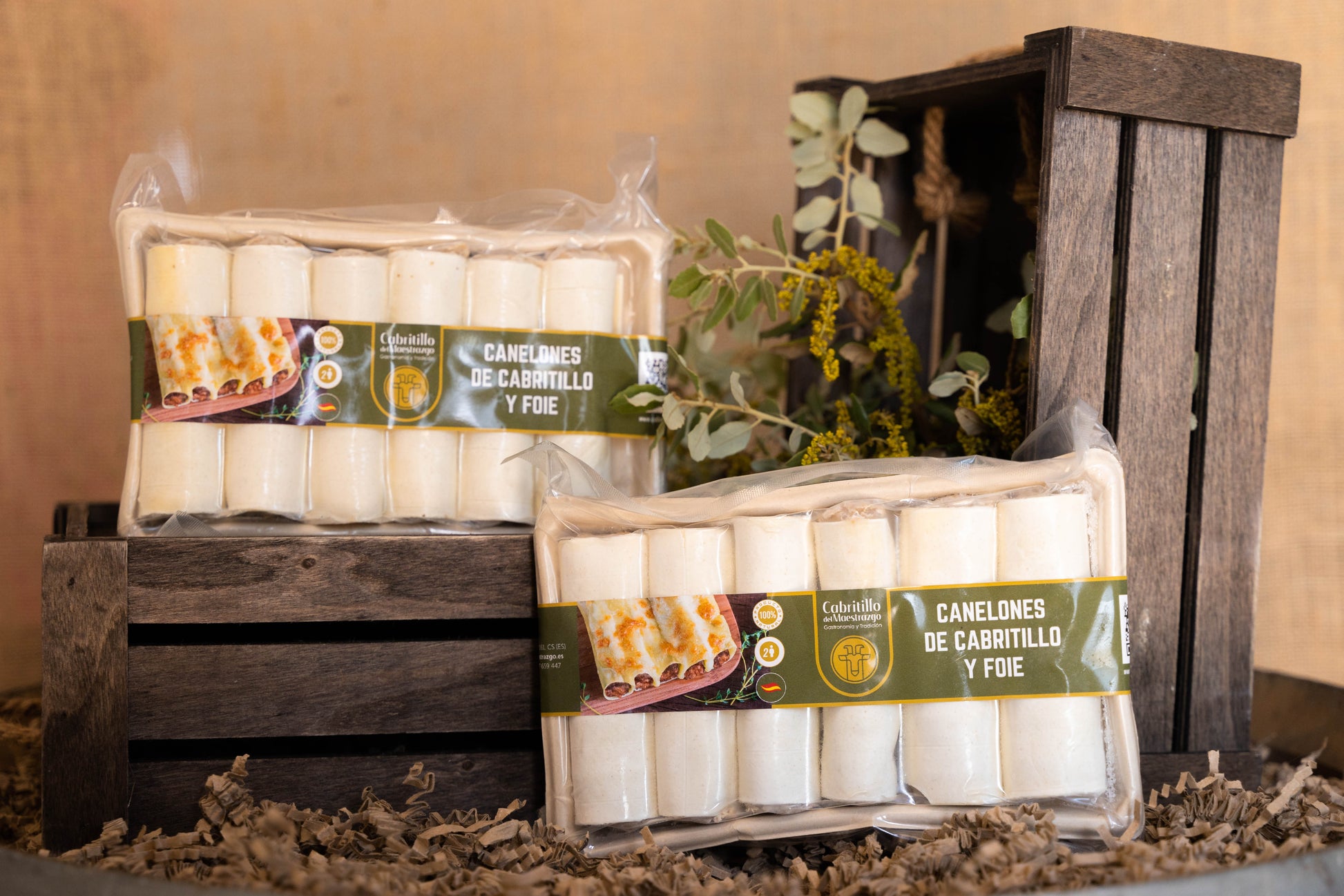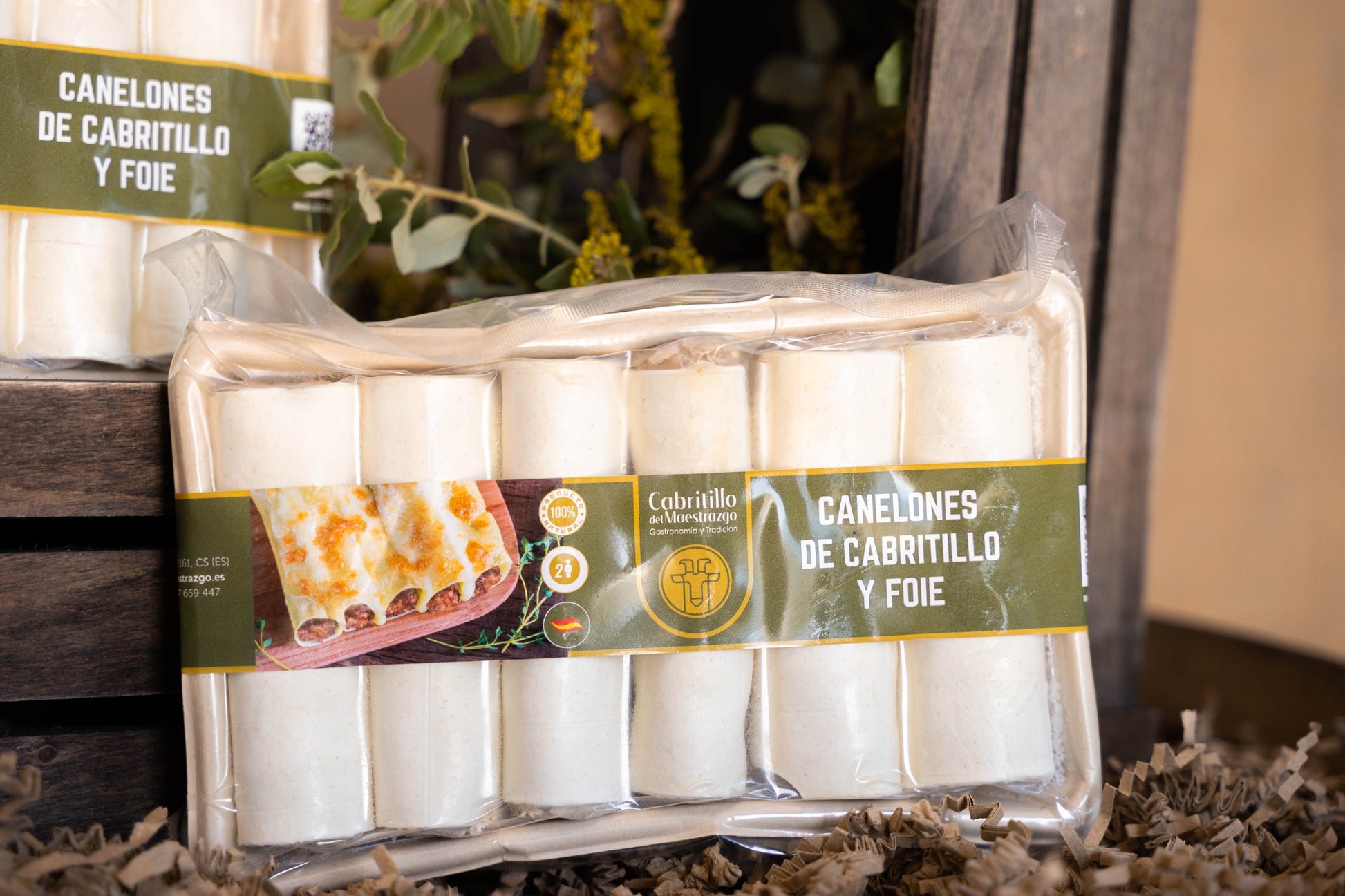 Este increíble plato de canelones combina la deliciosa carne de cabrito lechal con pollo de corral y el sabor intenso del foie. Preparado para cautivar los paladares más exigentes, estos canelones gourmet te transportarán a la región del Maestrazgo con cada bocado. ¡Una auténtica experiencia gastronómica!